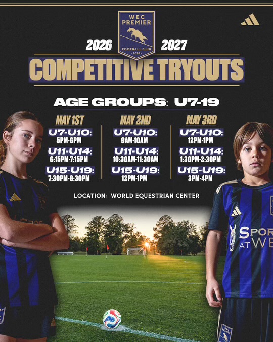 WEC Premier FC is excited to announce that tryouts are now open for registration across all of our campuses for the upcoming season.